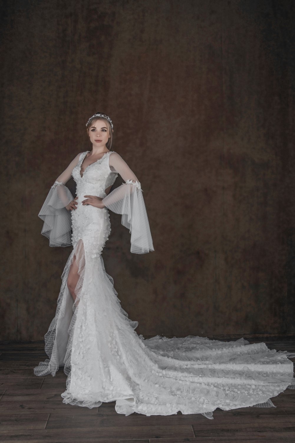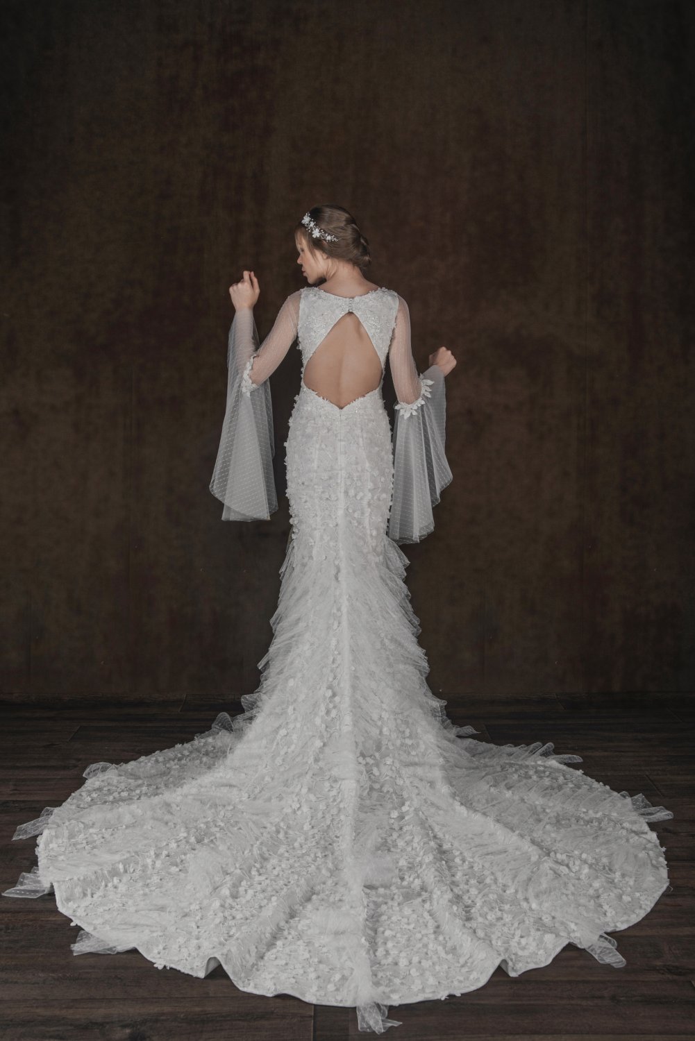 ÜÇ BOYUTLU ÇİÇEKLİ YIRTMAÇLI TÜL KOLLU BALIK MODEL